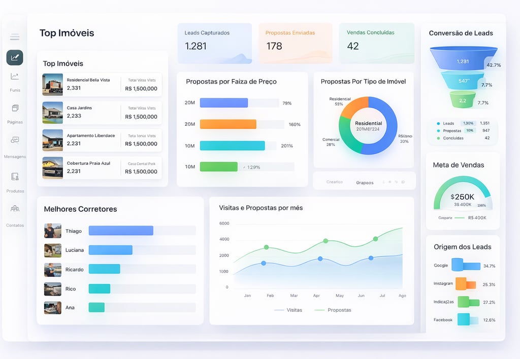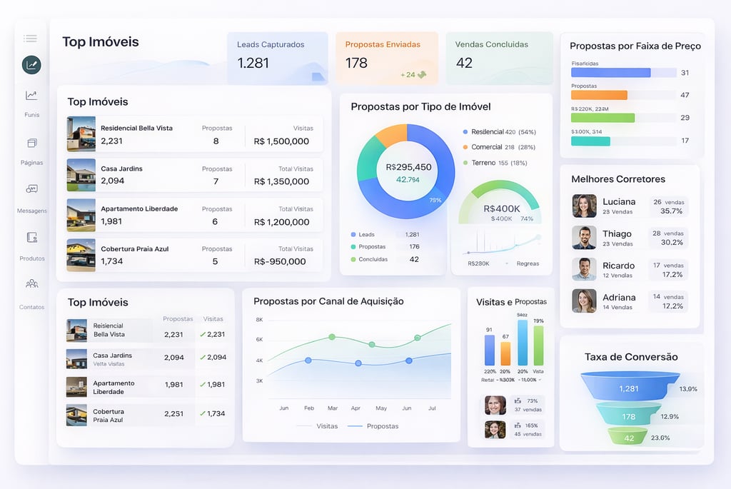 Tudo customizado para garantir que o Dashboard terá a cara da sua imobiliária.