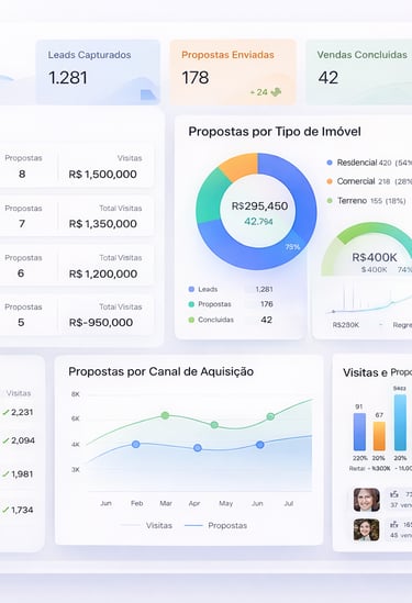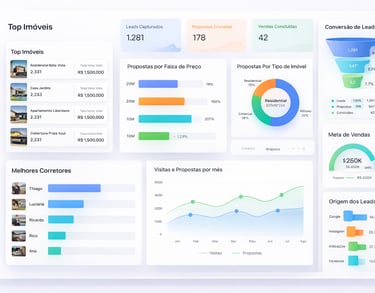 Dashboards para alta performance imobiliária, selecione a categoria e em pouco tempo terá uma poderosa ferramenta em suas mãos.
