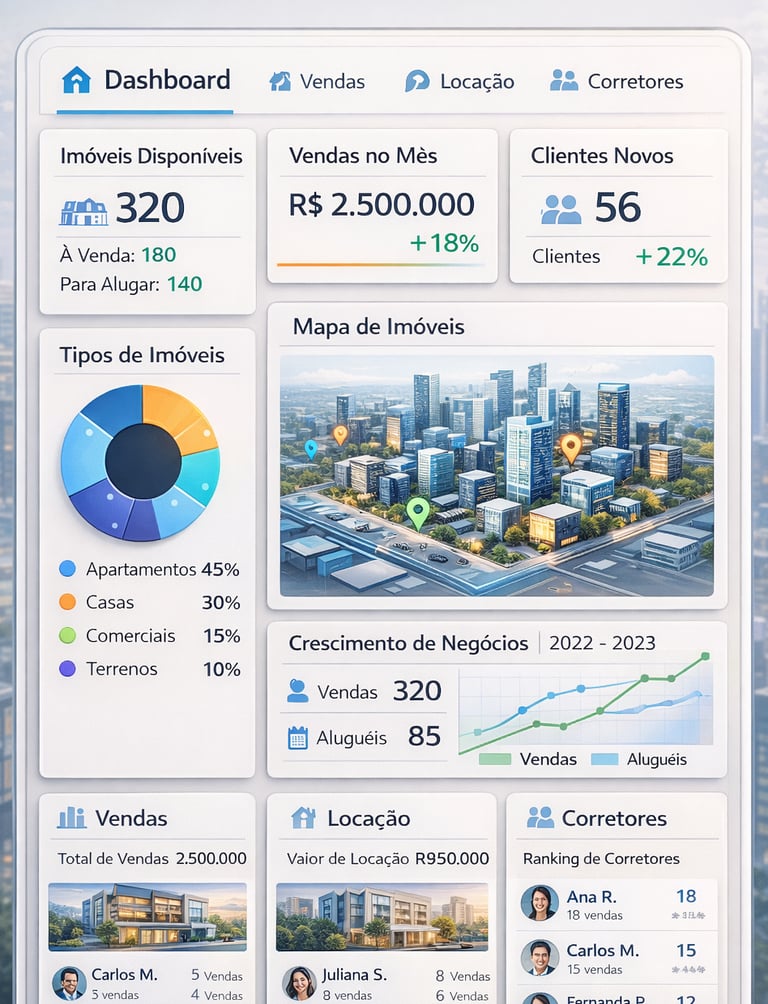 A Propery é especialista no desenvolvimento de dashboards avançados em Power BI, transformando dados complexos em informações claras, estratégicas e altamente acionáveis. Atendemos empresas e imobiliárias que buscam elevar seu nível de gestão, oferecendo visualizações inteligentes que facilitam análises profundas e decisões assertivaosso trabalho vai muito além da criação de relatórios. Atuamos em todo o ciclo de dados: tratamento, padronização, integração, modelagem e gerenciamento, garantindo informações precisas, organizadas e confiáveis. Dessa forma, ajudamos sua empresa a enxergar oportunidades, otimizar processos, reduzir custos e melhorar em todos aspectos.