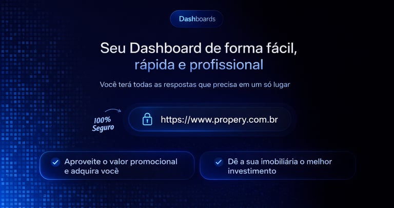 Com o Dashboard da Propery você tem melhores oportunidades dentro do mercado imobiliário. Monte sua estratégia, melhore suas decisões e saiba qual futuro do seu negócio.